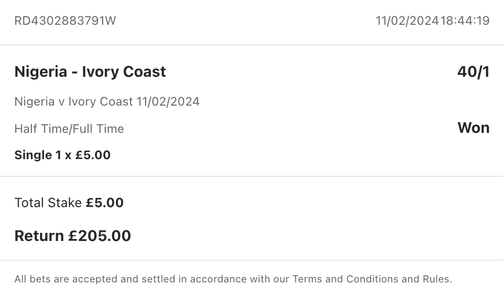 But if that sounds a bit rich to you, don’t worry, because even small £20 stakes would have made you an overall profit of £741.20.